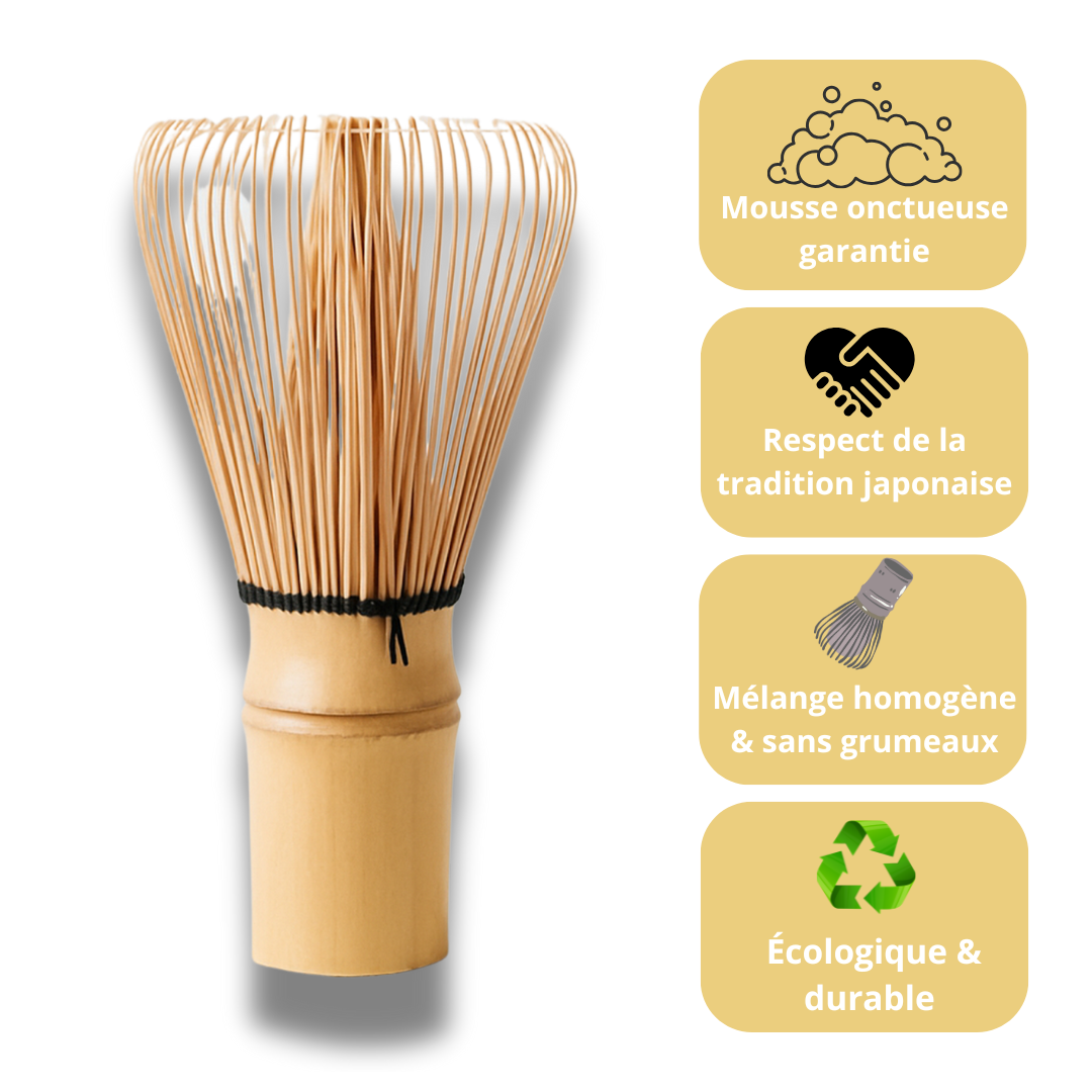 🌿 Tradition japonaise — Fabriqué à la main en bambou naturel pour une préparation authentique.