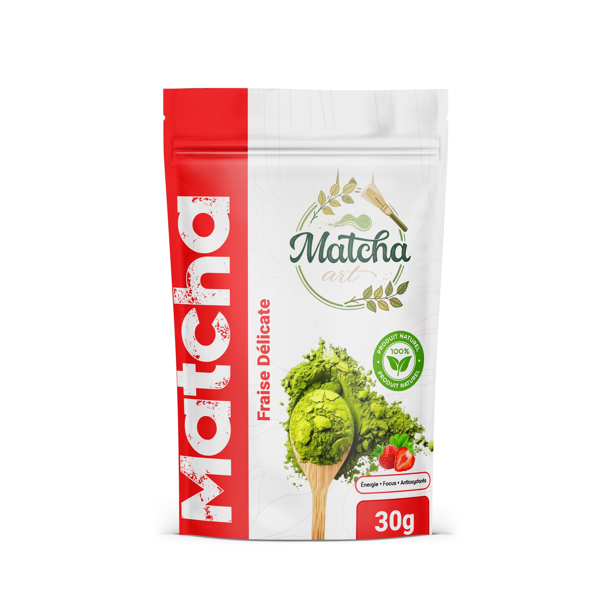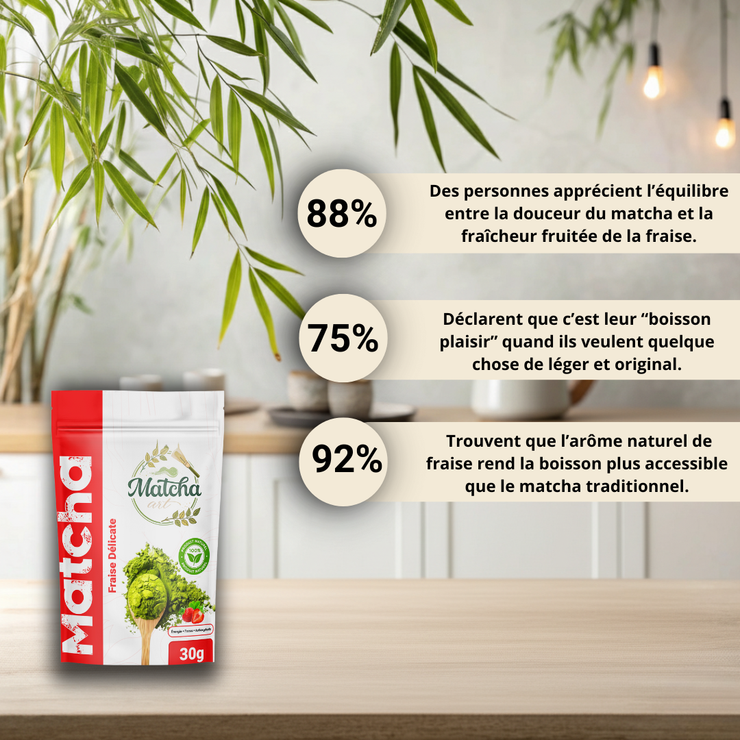 Découvrez l’alliance unique du matcha japonais de grade cérémonial et de la fraise délicate. Un mélange naturel qui associe la puissance antioxydante du thé vert à la fraîcheur fruitée de la fraise.
